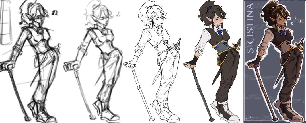| Rough Sketch | Clean Sketch | Line art | Colored | Shading and Highlights |